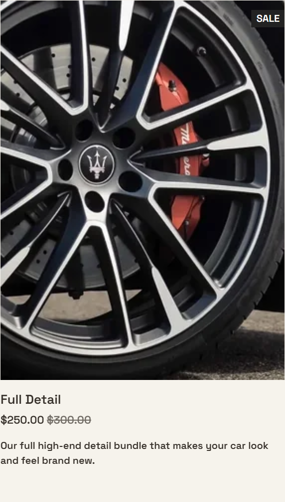 I specialize in high-end detailing for owners who value their time as much as their car. My mobile service protects your investment and keeps it looking showroom-ready without disrupting your schedule. Book now and let your vehicle reflect the standard you live by.